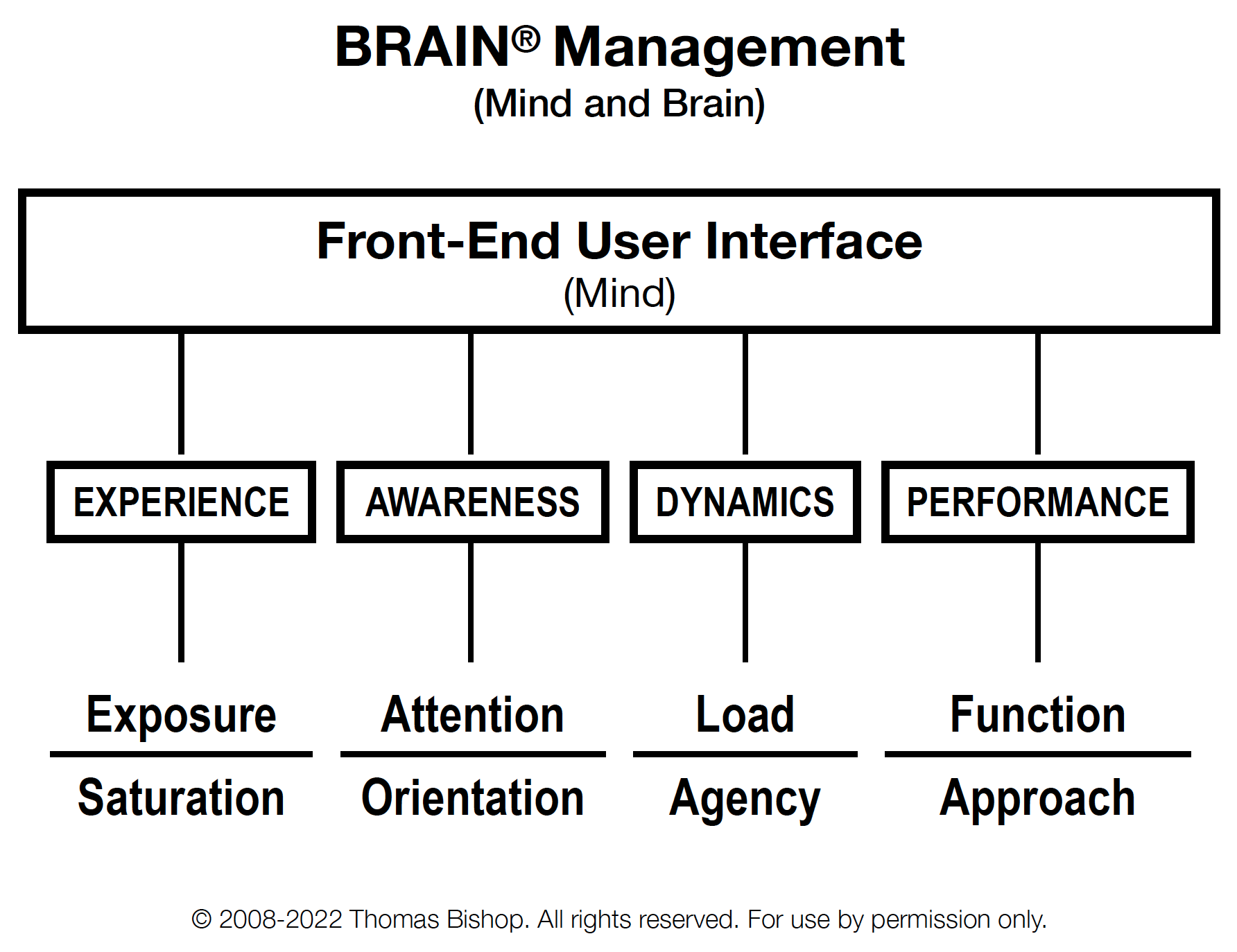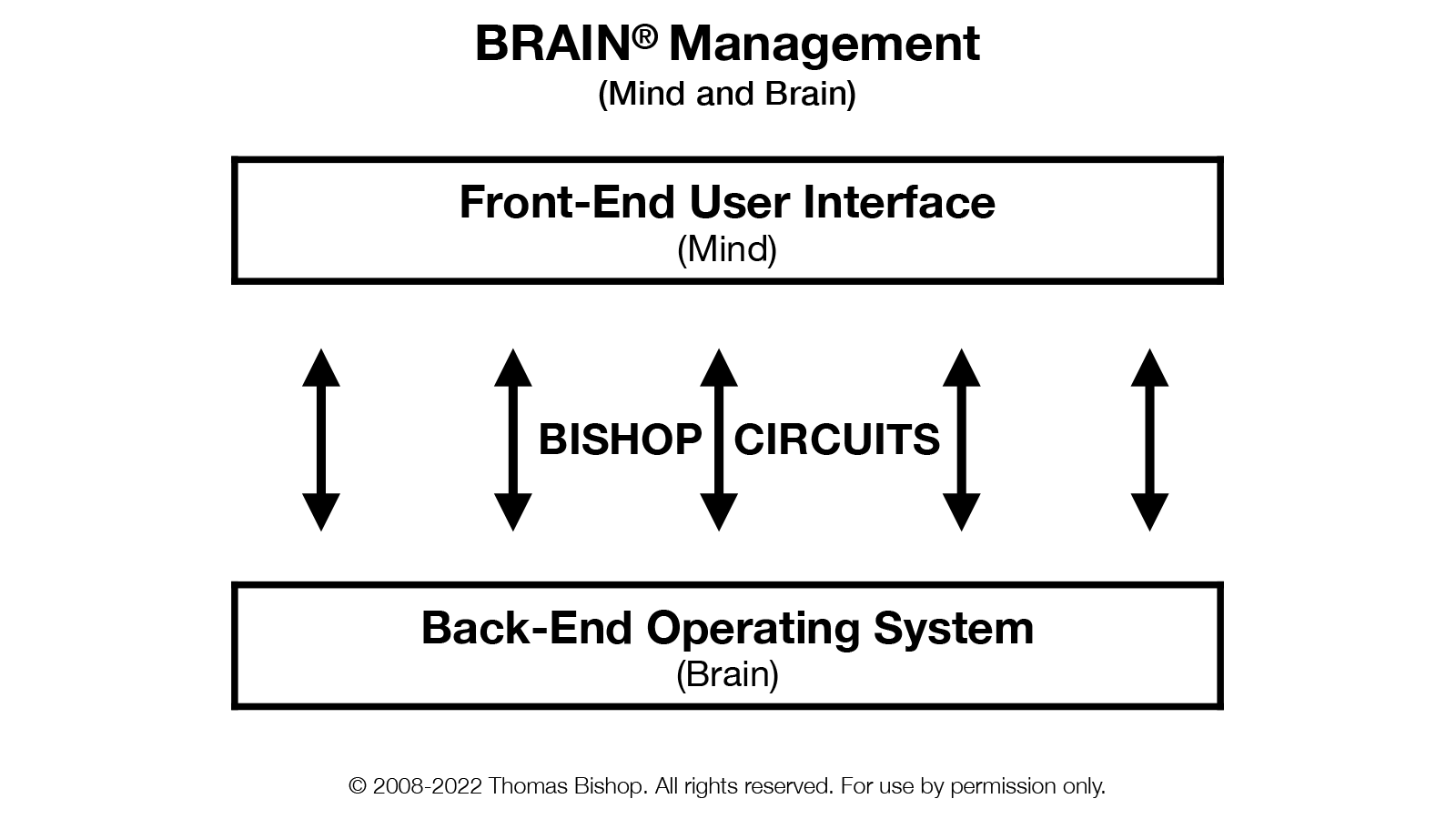 The primary goal is to manage the Front-End (user interface, mind) in order to facilitate a strong experience that can influence the Back-End (operating system, physical brain) to make changes through neuroplasticity and synchrony.